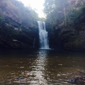 No meio do caminho, você encontrará um queda linda, grande, e com uma descida de fazer qualquer ateu acreditar que Deus existe. Se estiver na disposição, desça e curta, mas não se esqueça, tudo que desce, um hora terá que subir…