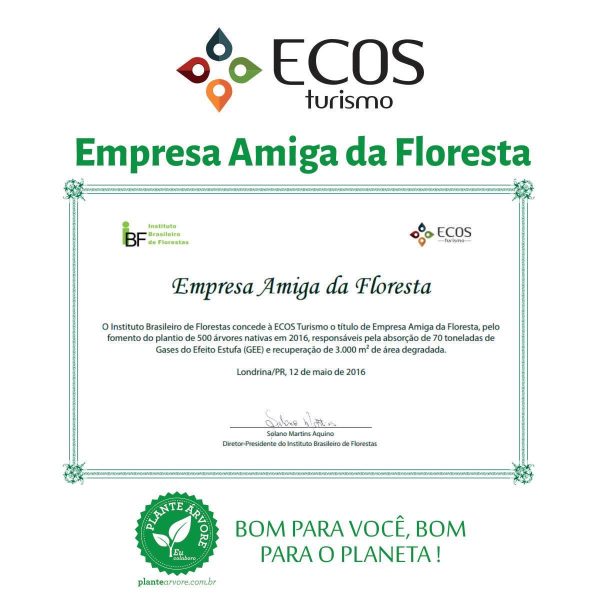 A nossa agência de viagens Ecos Turismo fez uma parceria com o  IBF (Instituto Brasileiro de Florestas). O IBF atua no desenvolvimento do setor ambiental brasileiro, ajudando empresas e proprietários rurais na gestão e execução de projetos e programas socioambientais.