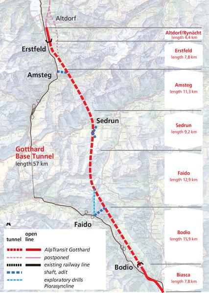 Quer atravessar o trajeto Zurique x Lugano de uma forma rápida? A partir de dezembro/2016 você poderá em apenas 41 minutos. Foi inaugurado na Suíça o túnel ferroviário de São Gotardo com fins de transporte de cargas e passageiros. Estão previstos que por lá passarão 260 trens de carga (100 km/h) e 65 trens para passageiros (200 km/h) por dia .