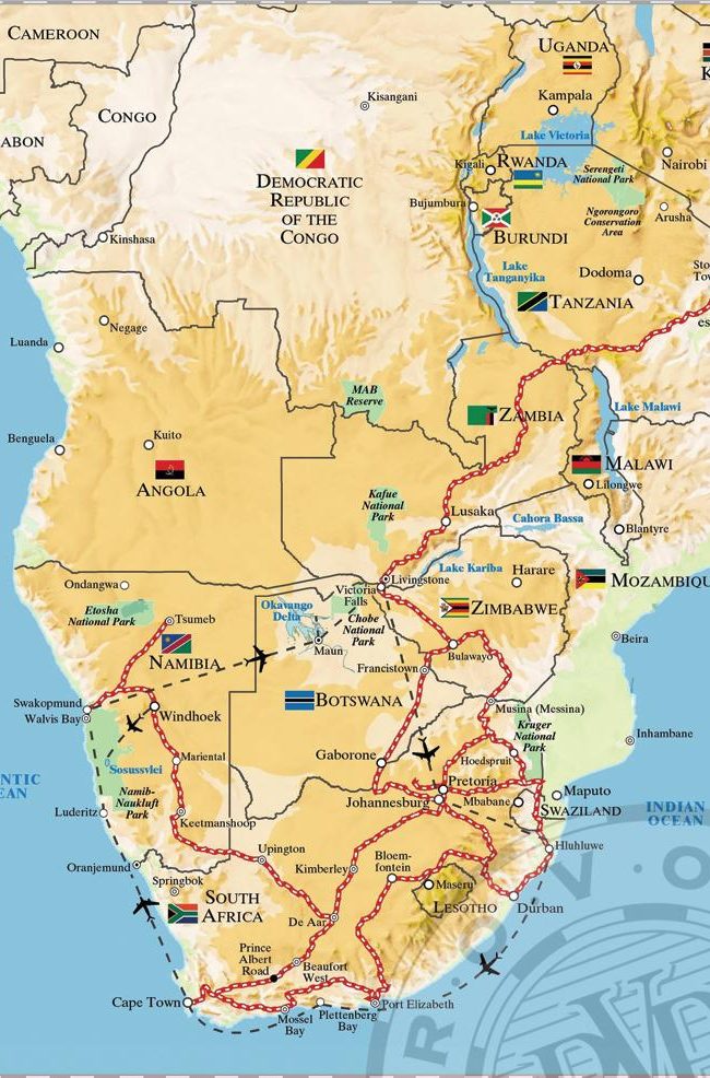 - 3 dias – Victoria Falls – Uma viagem de três dias através do cenário africano extremamente diversificado, através de Mafikeng, Botsuana, Mahalapye, Gaborone e, finalmente, até Zimbábue;